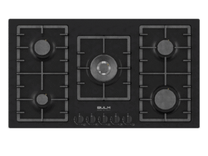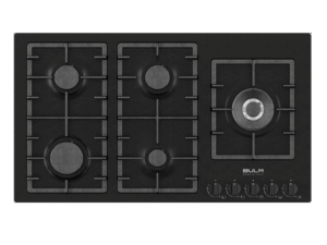 بولم BULM – سطح بلت ان غاز إيطالي 90 سم ستانلس ستيل | 5 شعلات غاز منها شعلة مزدوجة وشعلة ثلاثية لون اسود كامل تحكم يدوي جانبي إشعال إلكتروني دعامات أواني من الحديد الزهر حامل مقلاة من الحديد الزهر أنظمة أمان – B95-565NERO
