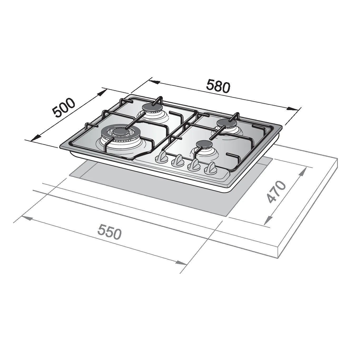 بولم – سطح بلت ان 4 شعلات غاز دعامات أواني من الحديد الزهر صناعة ايطالية 60 سم – BL65-400X