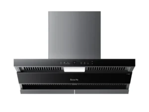 بولم – شفاط زجاجي مائل أسود 90 سم قوة 1200م3/الساعة – تحكم باللمس – تكنولوجيا إيطالية – UNIQA-U-90