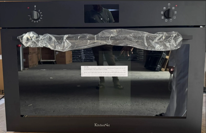 كيتشن نت – فرن كهربائي بلت ان 90 سم أسود – 2 مفاتيح للتحكم + شاشة عرض معلومات الطبخ – 25 لتر – باب آمن للأطفال – باب هيدروليك للإغلاق الناعم – MP2202010