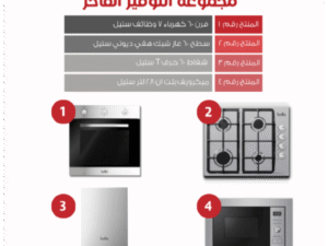 بكج أجهزة مطبخ بلت ان من منجنتي الإيطالية MANEGHNETTI – (شفاط + ميكرويف + مسطح + فرن )