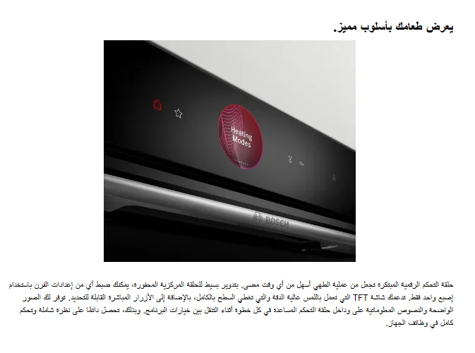 الميزات: 14 وظيفة – تنظيف ذاتي مزدوج – شاشة TFT بلس – تحكم رقمي ذكي – وظائف قرمشة – مستشعرات خبز وشواء – تحكم عبر Home Connect