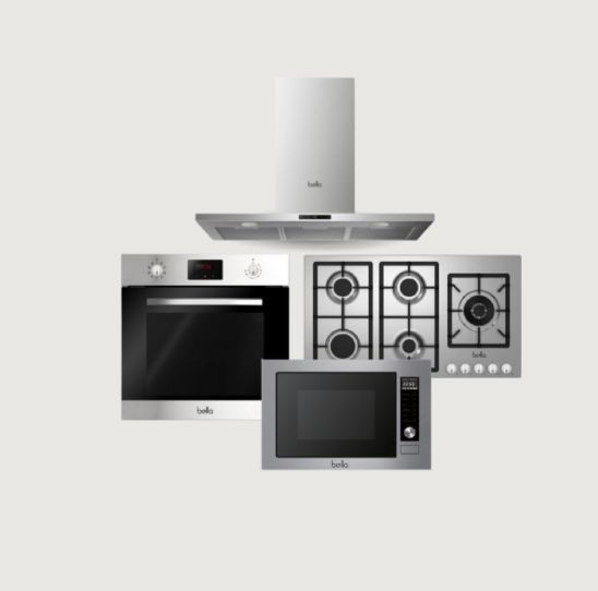 بيلا BELLA - بكج بلت ان - فرن بيلا 60 سم – 7 وظائف - ميكرويف بيلا 28 لتر – مدمج - سطح غاز بيلا 90 سم – 5 عيون - شفاط جداري بيلا 90 سم – تصميم T