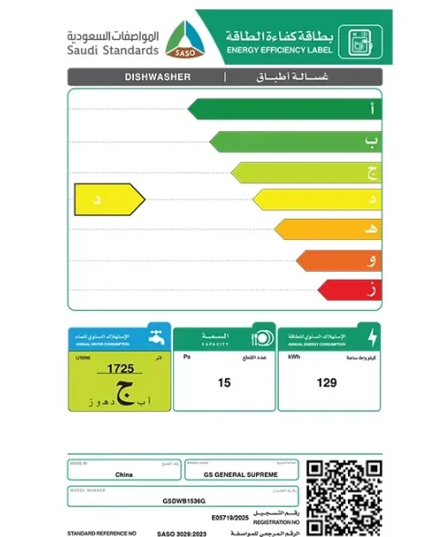 🧼 مواصفات غسالة الصحون جنرال سوبريم – GSDWB1536G