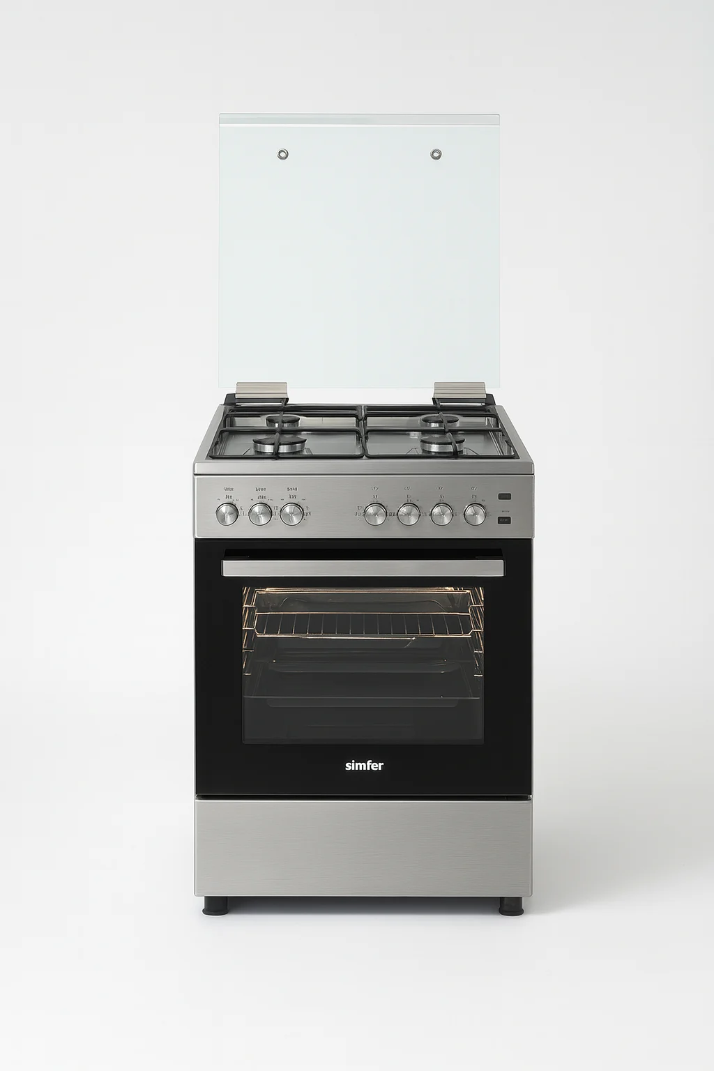 سيمفر – فرن 4 عيون 60*60 سم – زجاج سهل الفتح والتنظيف – اشعال ذاتي – شواية داخليه – صينية تيفال – أمان كامل – تركي F6402SGRIM-SMF01