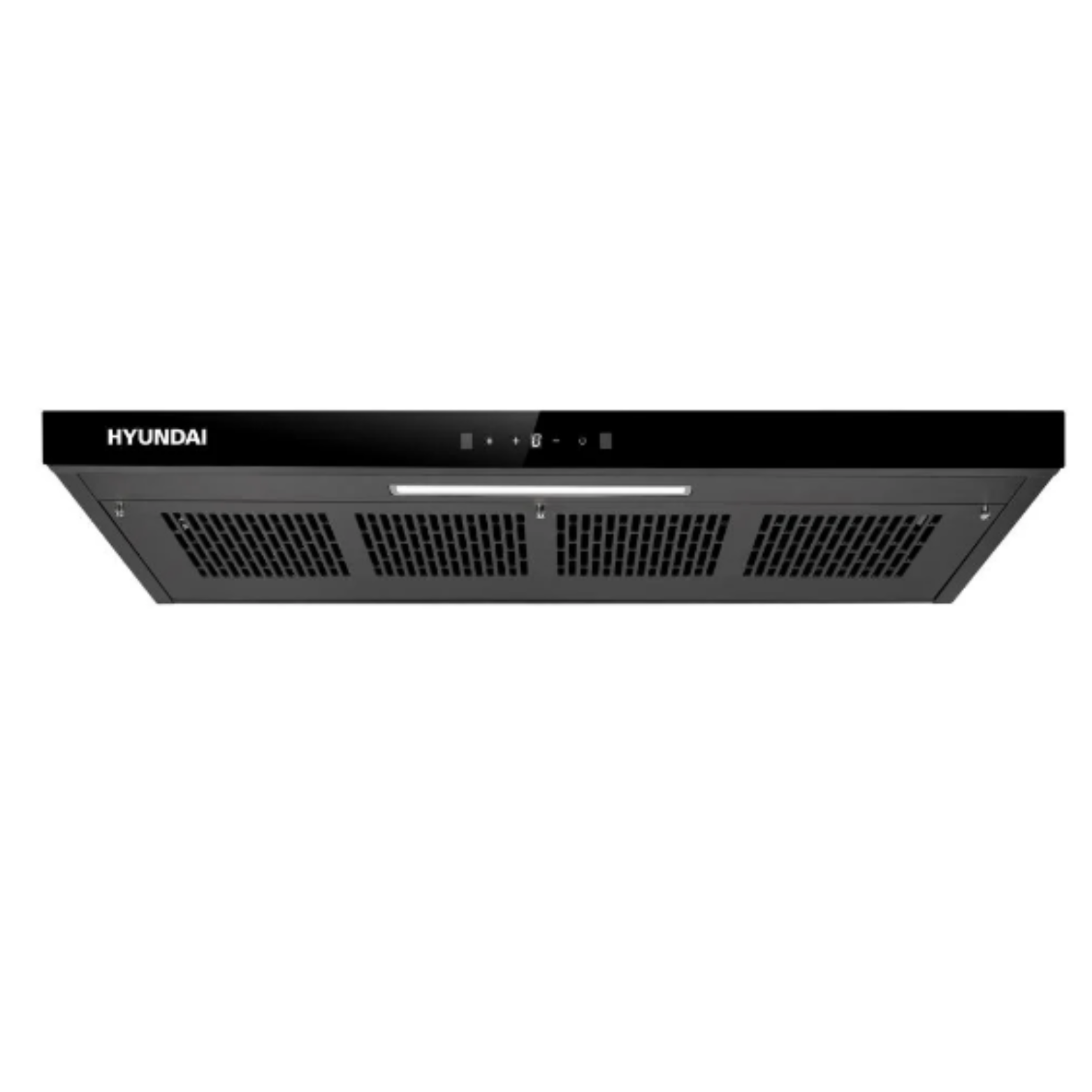 شفاط هيونداي كاست 90 سم أسود – تصميم راقٍ، تحكم باللمس، فلتر نيو بافل سهل التنظيف، وقوة شفط تصل إلى 990 م³/ساعة – موديل HY-12