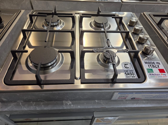 🔥 عدد مناطق الطهي: 4 شعلات غاز بأحجام متنوعة لتلبية مختلف احتياجات الطهي.