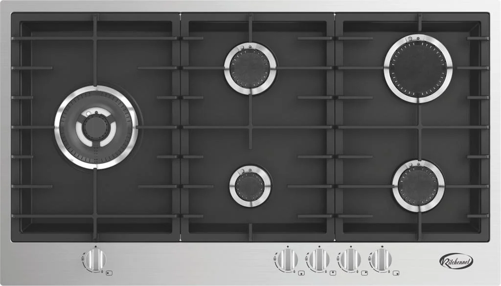كيتشن نت – سطح شعلات 5 غاز شبك ثقيل أطراف السطح ستانليس ستيل سطح أستيل أسود مطفي 90 سم – MP2201010