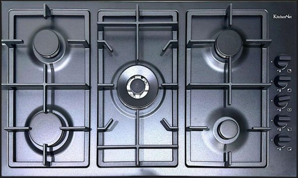 🔥 موقد غاز كيتشن نت – 5 شعلات – 90 سم – إيطالي – استيل أسودالماركة : Kitchen Net