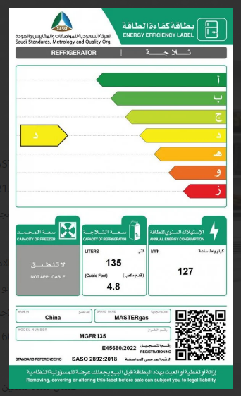 الرئيسية » المتجر » ماستر جاز – ثلاجة بلت ان مدمجة تحت الطاولة اندركونتر 4.8 قدم – 135 لتر – MGFR135