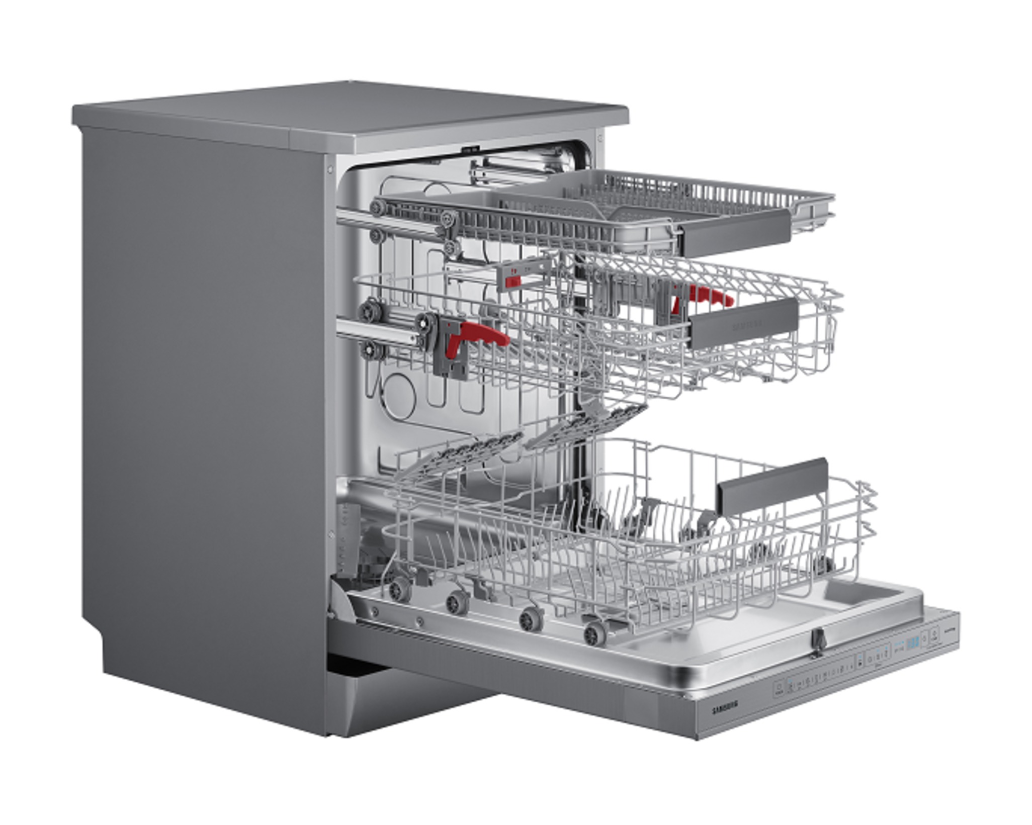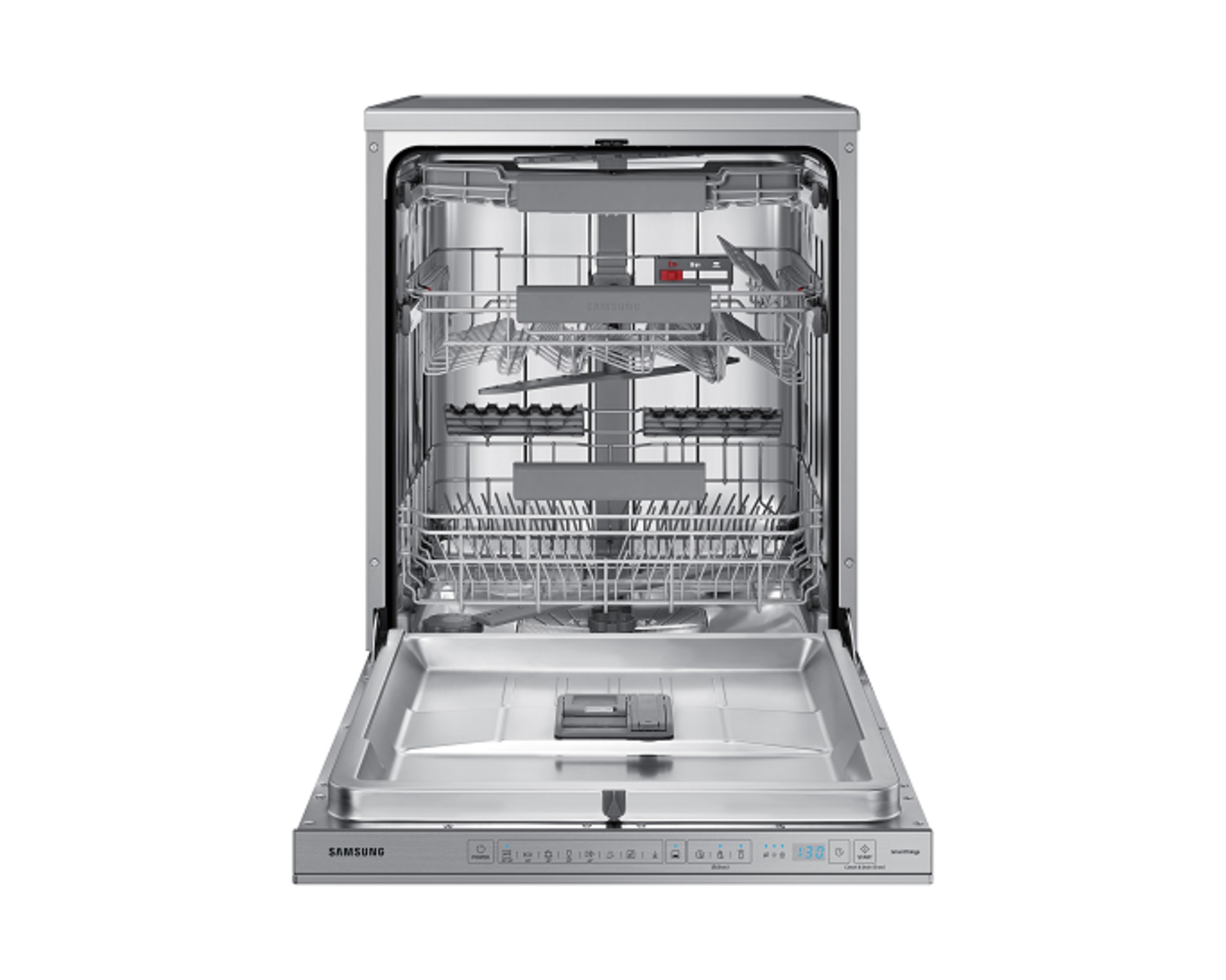 استمتع بطريقة أكثر ذكاءً وفعاليةً لتنظيف الأطباق. تتمتع بتصنيف عالٍ لكفاءة الطاقة، وتتحرك السلال بسهولة ويمكن تكوينها بحيث تستوعب العديد من العناصر المختلفة. كما يمكنك أيضًا التحكم عن بُعد في غسالة الأطباق وتنزيل برامج متخصصة باستخدام تطبيق SmartThings*.