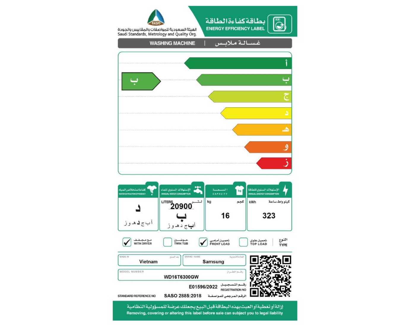غسالة 16 كجم مع مجفف 10 كجم، مدعمة بنظام التحكم عبر الذكاء الاصطناعي، شبكة واي فاي، محرك دي دي، لون أبيض